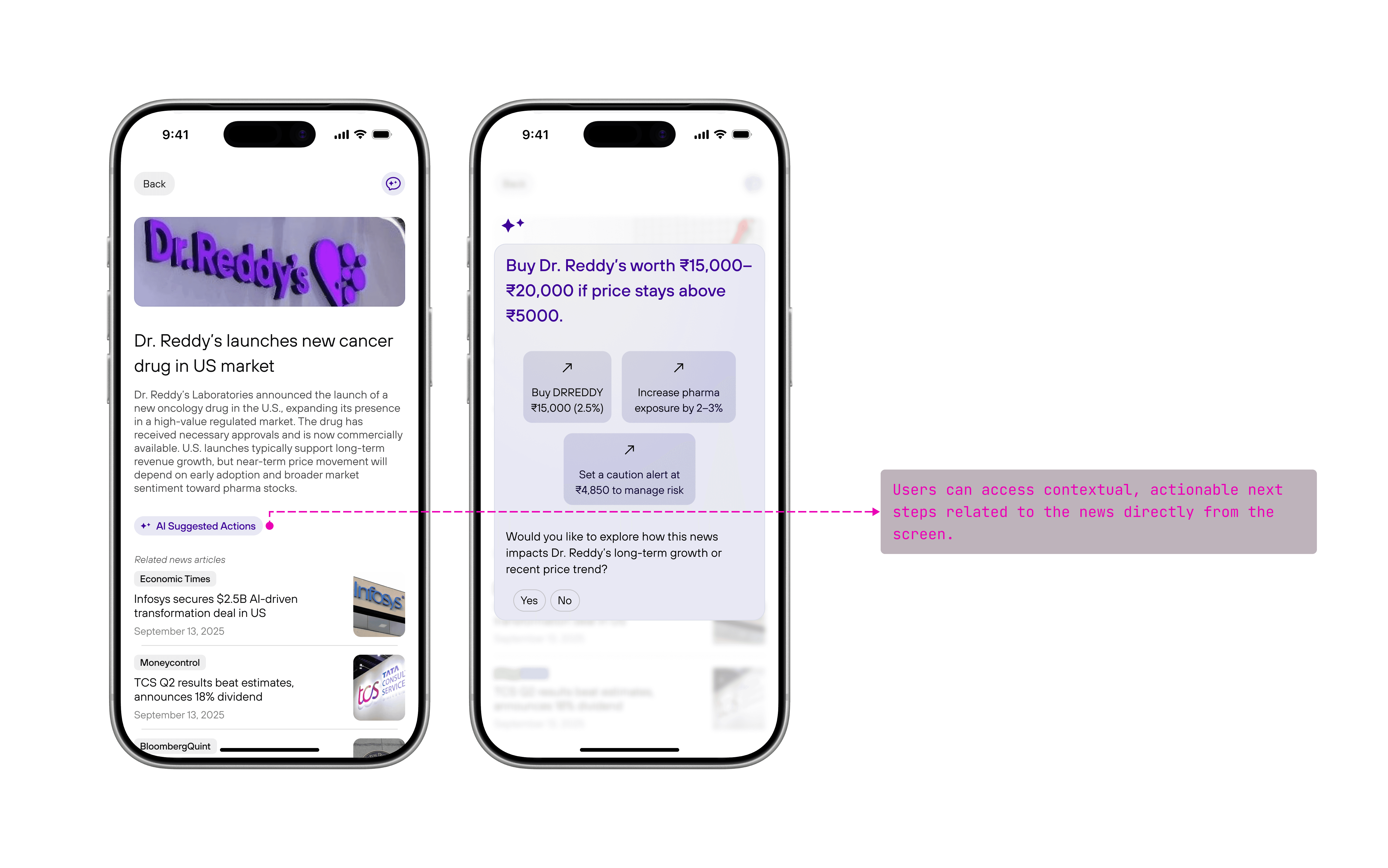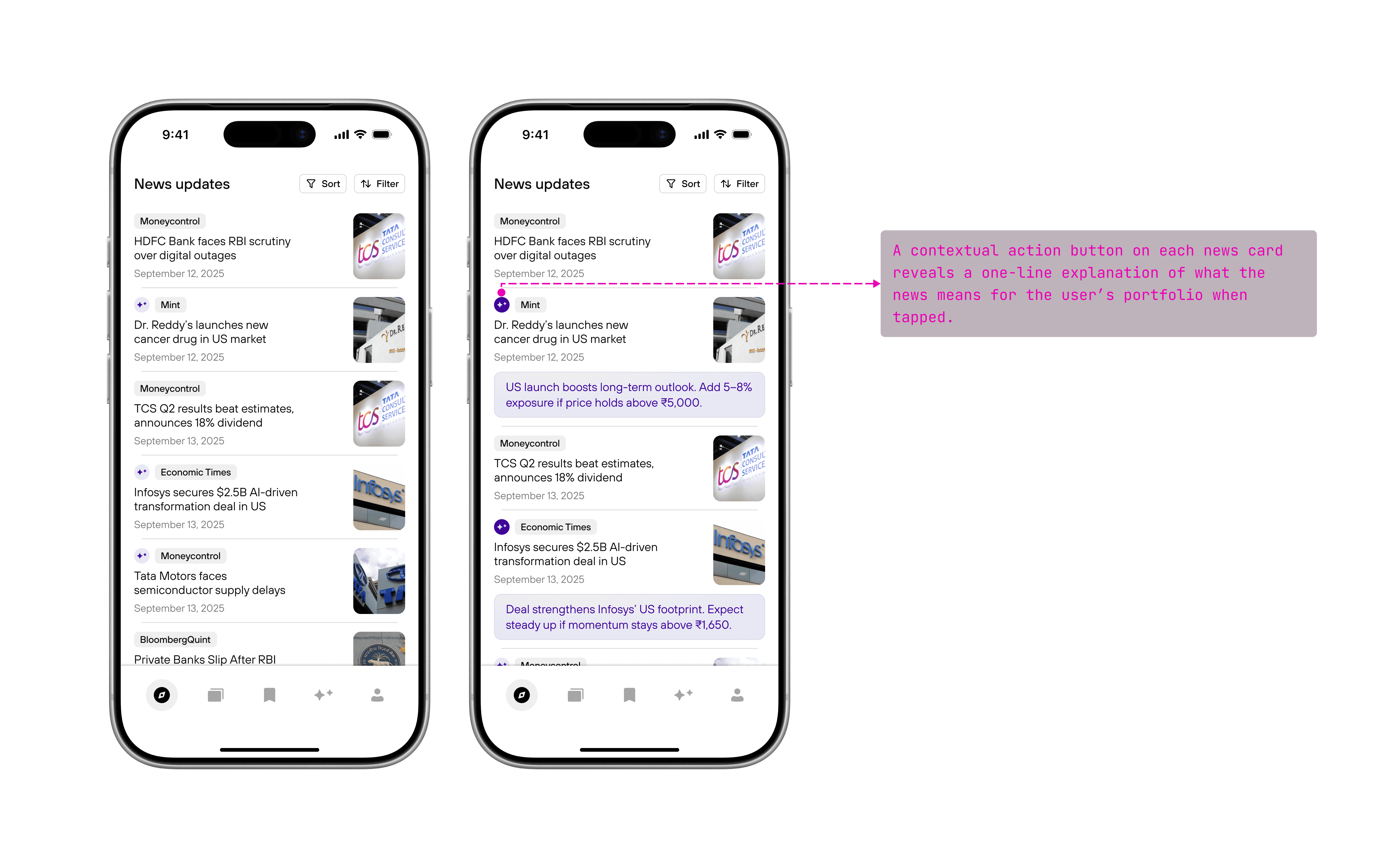 Made relevance immediately visible by attaching insights directly to affected stocks.